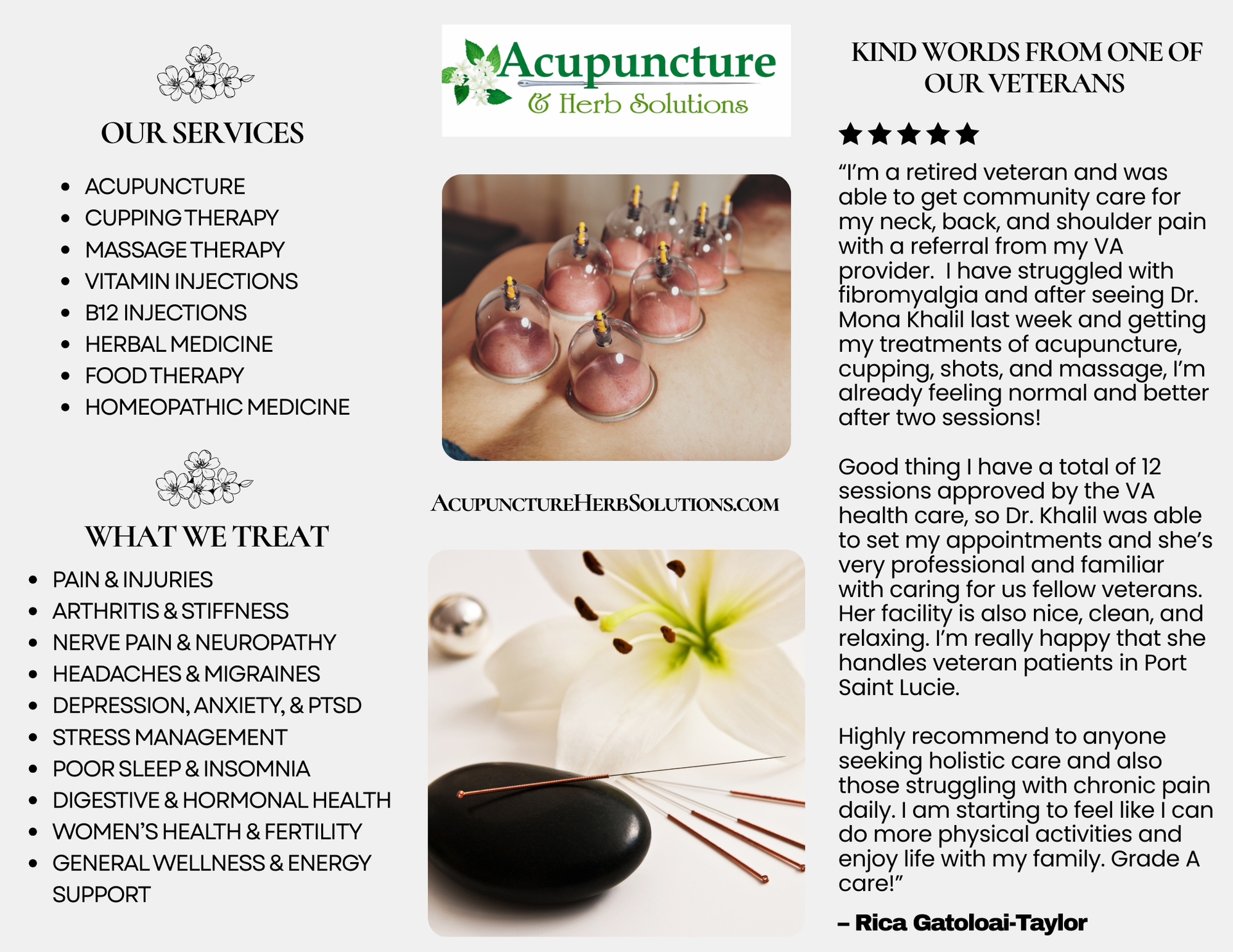 Start the road to better health and well-being with Acupuncture and Herb Solutions in our NEW location in Port St. Lucie, FL. We are located right on Gatlin Blvd and Calabria Circle.